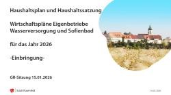 Haushaltsplan 2026 und Wirtschaftspläne für die Eigenbetriebe "Wasserversorgung Rosenfeld" und "Sofienbad"