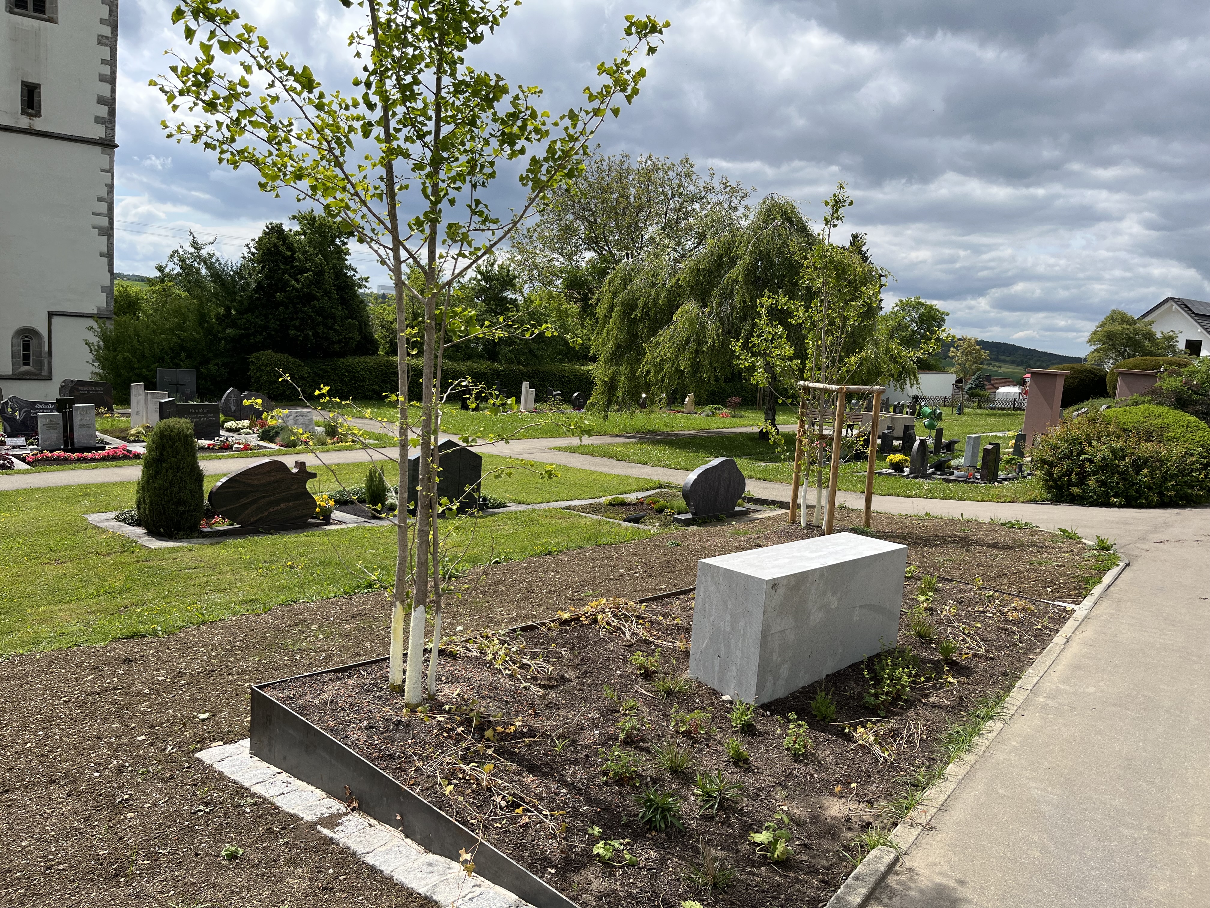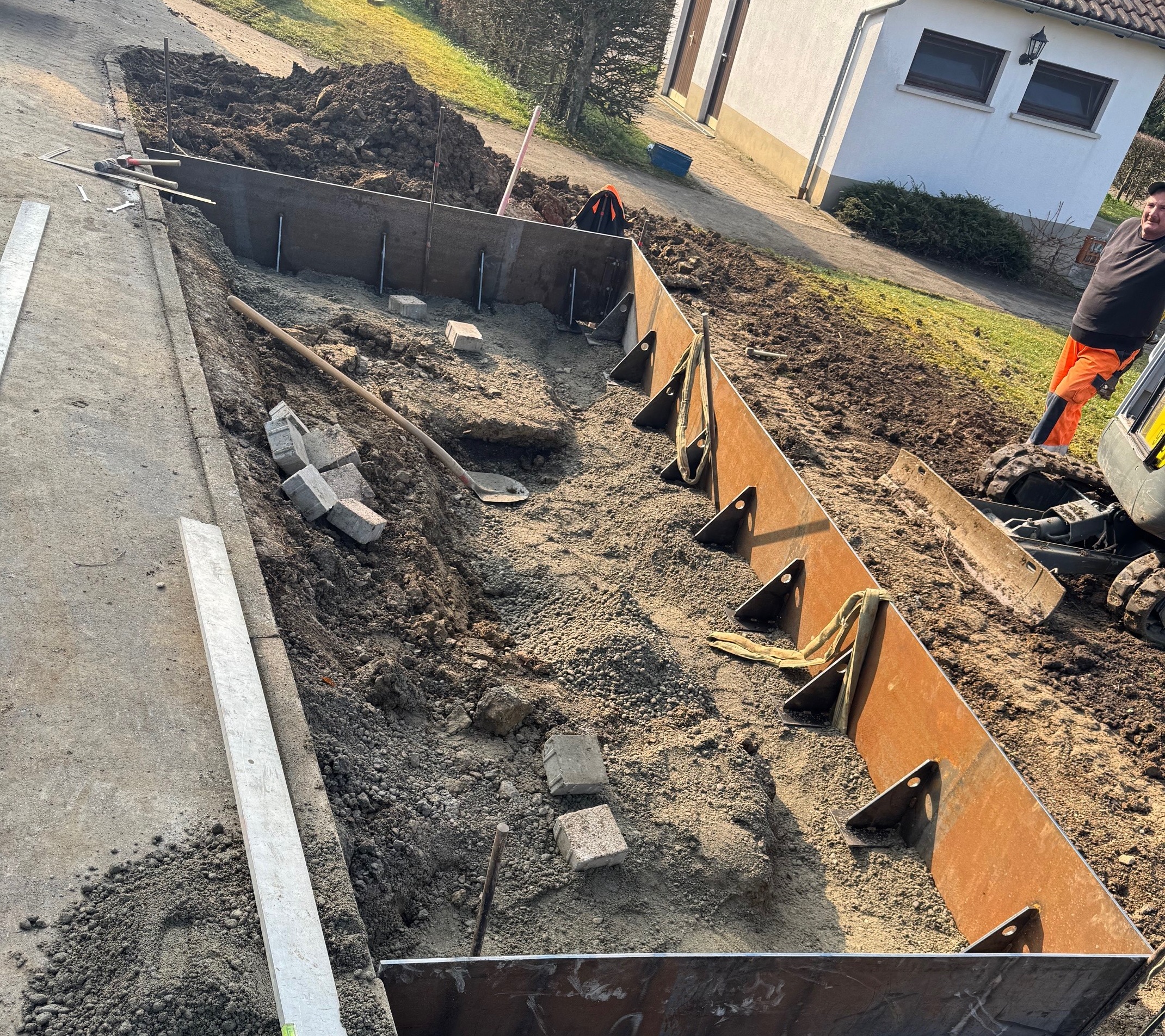 Auf dem Friedhof in Isingen haben die Arbeiten begonnen, mit der Herstellung der Umrandung aus Cortenstahl.