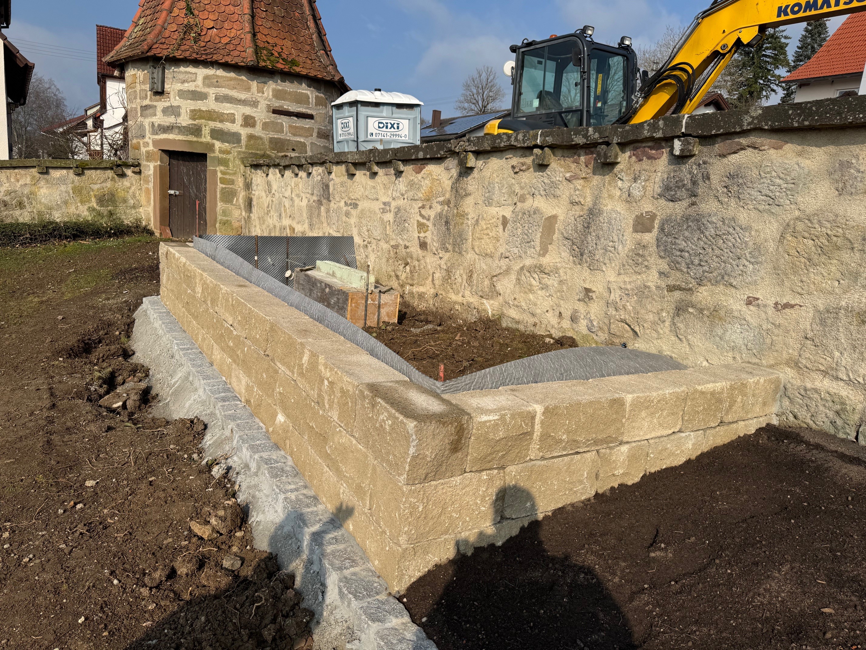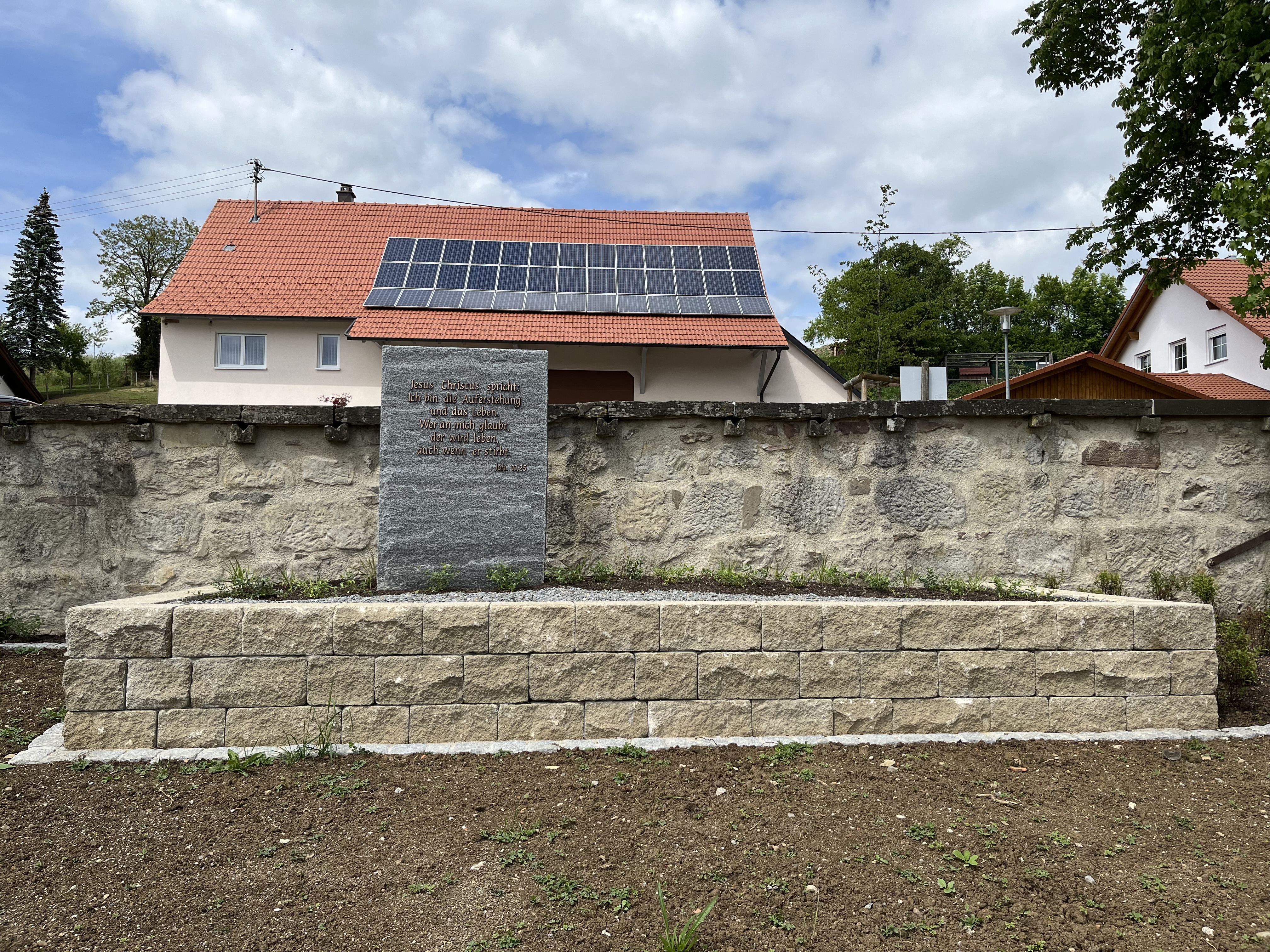 Iin Leidringen wird noch Boden in die Umrandung eingebracht und noch die Bepflanzung durchgeführt. Die Schrifttafel wird im Nachgang gesetzt.