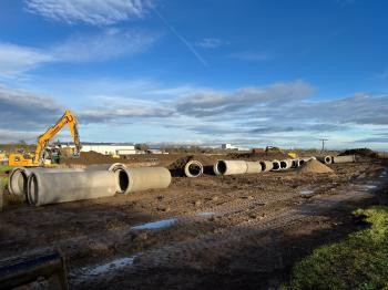 Die Umlegung des Schmutzwasserkanales um das Misch- und Gewerbegebiet Brühl in Leidringen schreiten voran.